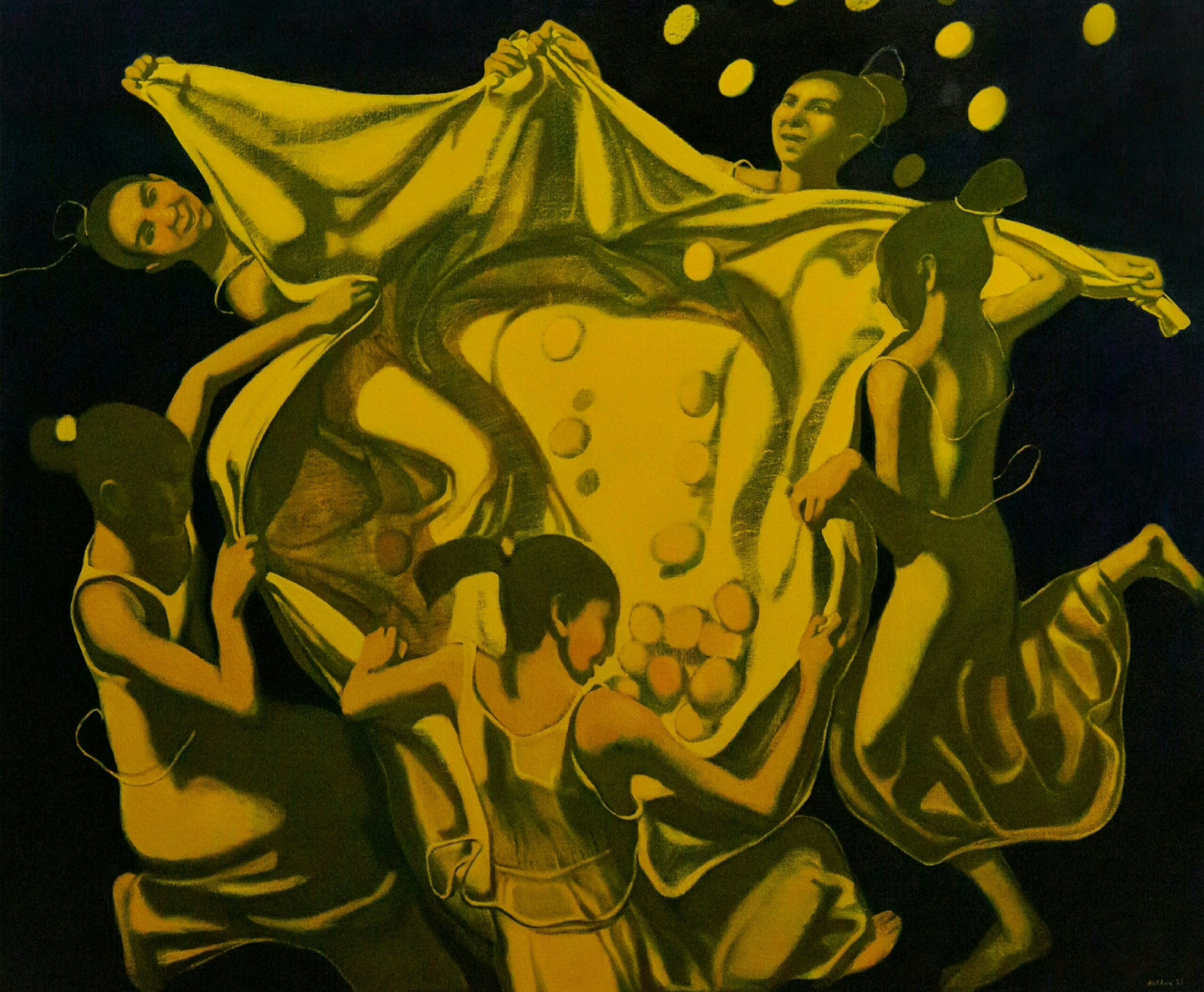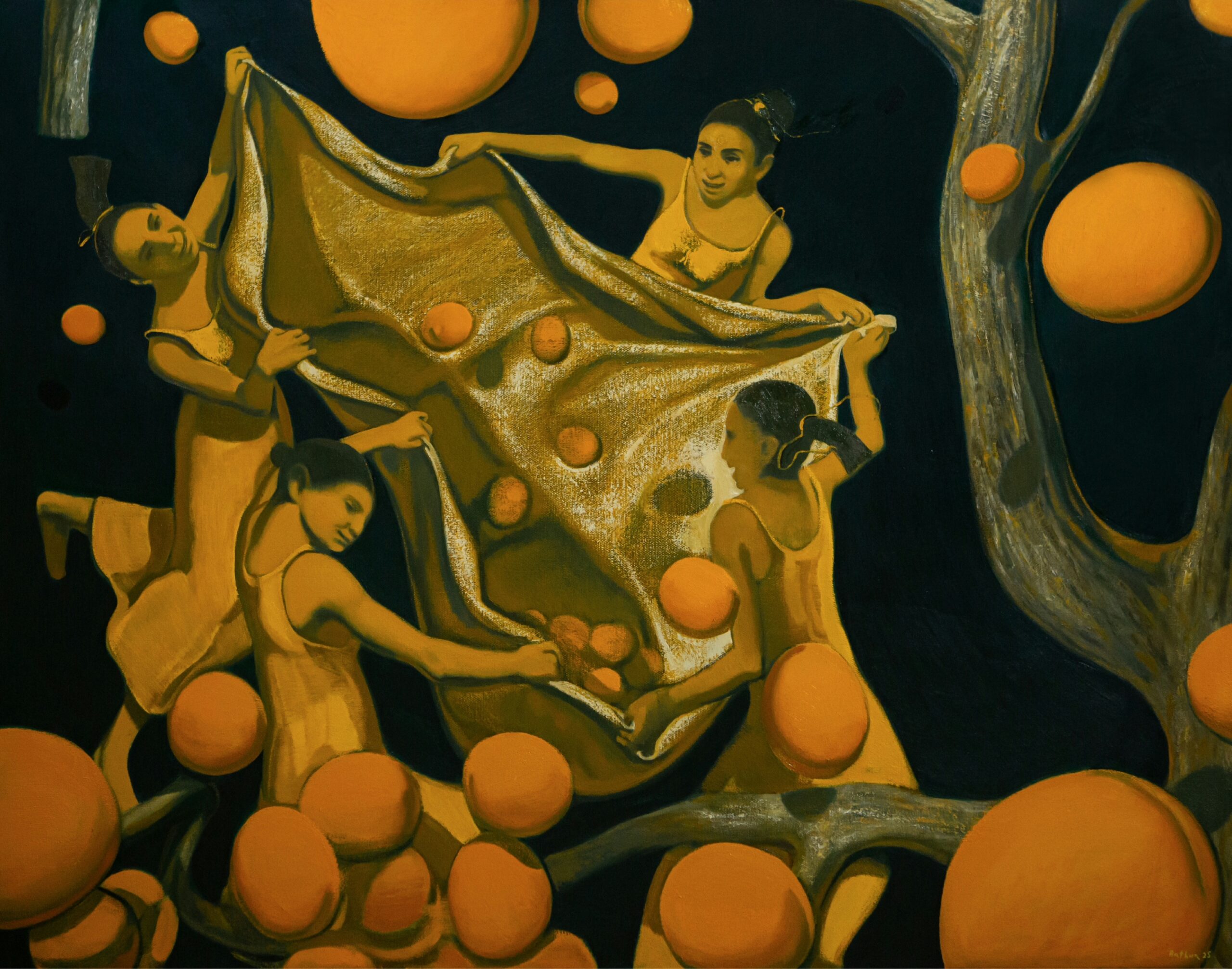 “The dance of harvest” 2025, Oil on canvas, 130×155 cm